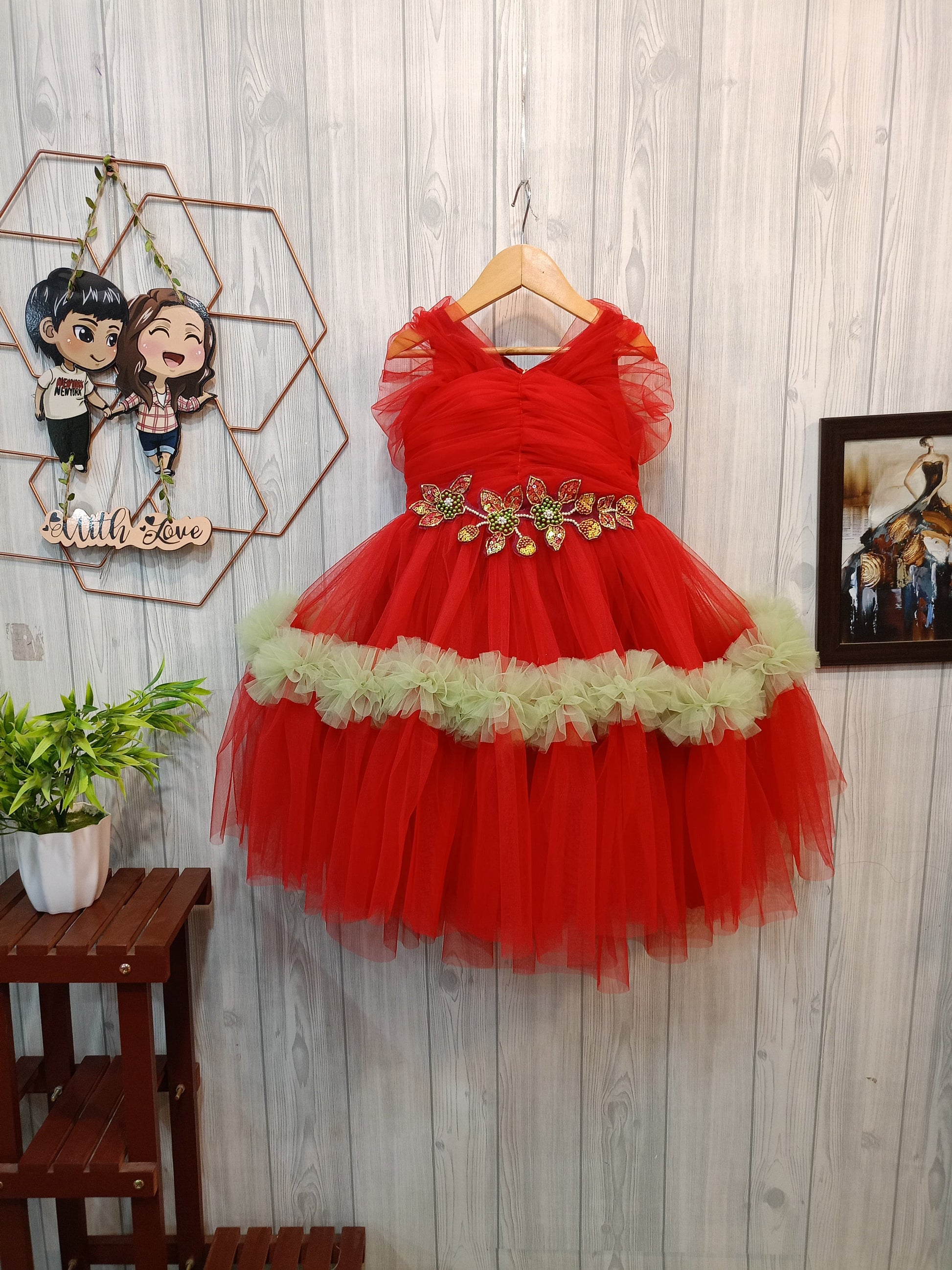 Celebrate in style with this beautiful red birthday dress! The dress is also available in a mother-daughter combo, making it the perfect outfit for a special day. Made with soft and skin-friendly fabric, it's comfortable for all-day wear. Customize the color to your liking, with all colors available. 🎉🎂