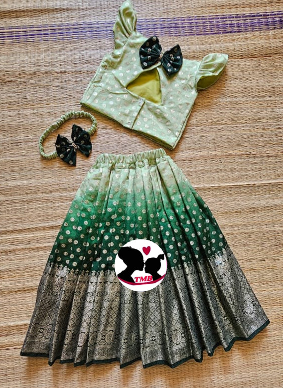 Celebrate the festive season in elegance with our Vishu Special Pattu Pavadai Dress Set, a perfect blend of tradition and style. Crafted from premium daman silk with a stunning double-shade effect, this outfit is designed to make your little one shine at every cultural event. The soft crape lining ensures a comfortable fit, making it ideal for long festive celebrations.